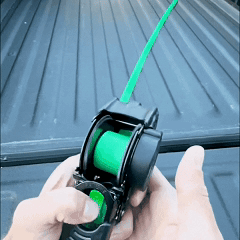 Gracias a su sistema autorretráctil, esta cincha se recoge sola con solo pulsar un botón, dejando todo perfectamente ordenado y sin enredos.